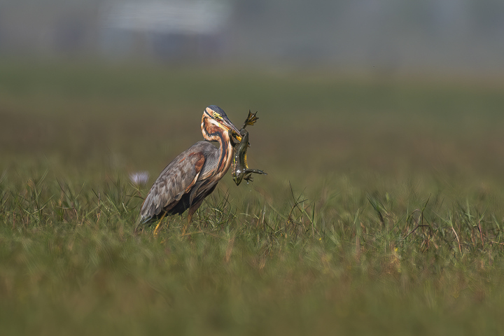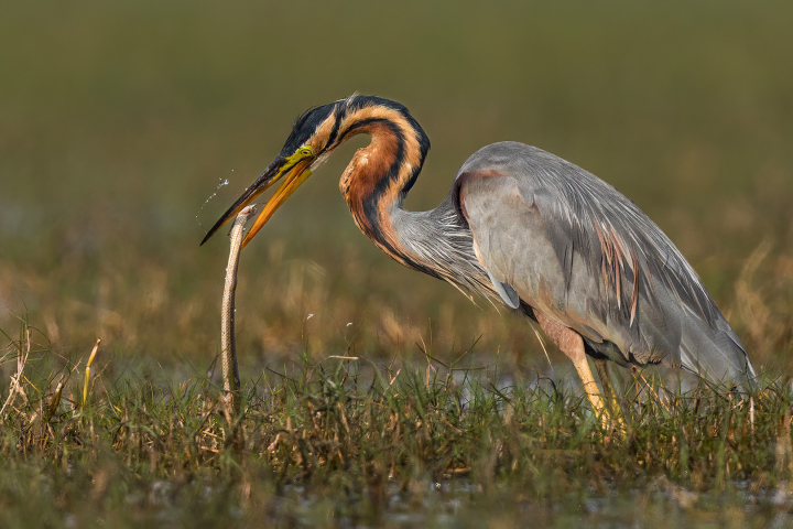 Purple Heron With Catch